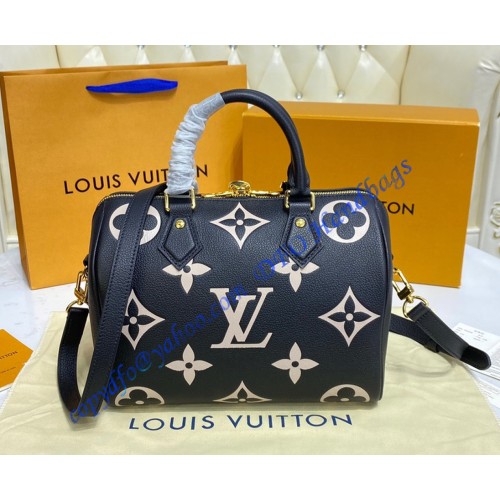 Louis Vuitton Monogram Empreinte Speedy Bandouliere 25 M58947-black-beige