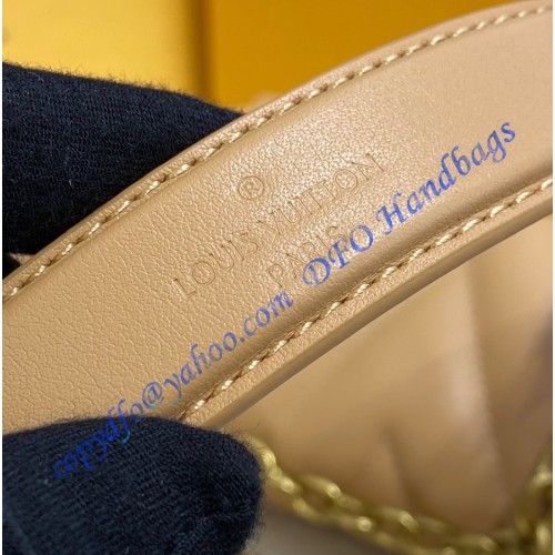 The signature V shaped quilting of this Chain Bag handbag is revisited in smooth cowhide leather. The vintage gold-color chain slides through engraved eyelets while the folded gussets make it supple and body-friendly. The interior enables easy organization of a woman’s essentials thanks to its multiple compartments. The recognizable LV emblem signs the bag.