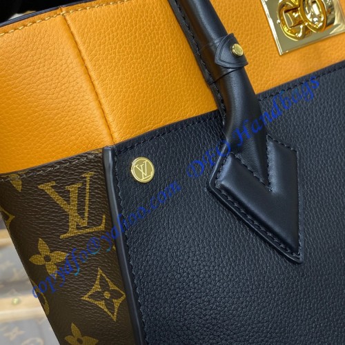 The On My Side tote bag is fashioned from an elegant combination of small-grained calf leather and emblematic Monogram canvas. The large outside pockets in contrasting canvas create a bag-in-a-bag look. The roomy interior can easily hold everything needed for a day at the office while the adjustable strap makes for practical cross-body carry.