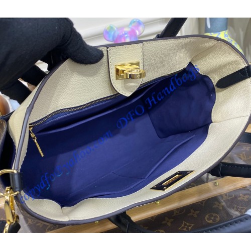 The On My Side tote bag is fashioned from an elegant combination of small-grained calf leather and emblematic Monogram canvas. The large outside pockets in contrasting canvas create a bag-in-a-bag look. The roomy interior can easily hold everything needed for a day at the office while the adjustable strap makes for practical cross-body carry.