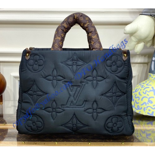 From the LV Pillow capsule collection for the 2022 winter season comes this OnTheGo MM tote. The bag’s eco-design integrates recycled and sustainable materials: the body is fashioned from recycled padded nylon, embroidered with Monogram motifs. Playful puffy top handles and long shoulder straps make this trendy carryall easy to style and wear.