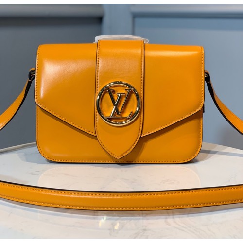 The structured yet curved lines of the LV Pont 9 handbag are fashioned from smooth leather. The LV Circle, a classic House signature reinterpreted by Nicolas Ghesquière, adorns the bag’s flap and the adjustable strap’s buckle. Hidden features such as a colored leather lining and Monogram Flower magnetic closure on the flap’s underside bring subtle sophistication.