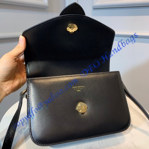 The structured yet curved lines of the LV Pont 9 handbag are fashioned from smooth leather. The LV Circle, a classic House signature reinterpreted by Nicolas Ghesquière, adorns the bag’s flap and the adjustable strap’s buckle. Hidden features such as a colored leather lining and Monogram Flower magnetic closure on the flap’s underside bring subtle sophistication.