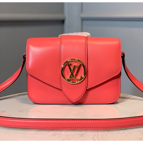 The structured yet curved lines of the LV Pont 9 handbag are fashioned from smooth leather. The LV Circle, a classic House signature reinterpreted by Nicolas Ghesquière, adorns the bag’s flap and the adjustable strap’s buckle. Hidden features such as a colored leather lining and Monogram Flower magnetic closure on the flap’s underside bring subtle sophistication.