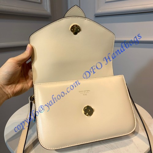 The structured yet curved lines of the LV Pont 9 handbag are fashioned from smooth leather. The LV Circle, a classic House signature reinterpreted by Nicolas Ghesquière, adorns the bag’s flap and the adjustable strap’s buckle. Hidden features such as a colored leather lining and Monogram Flower magnetic closure on the flap’s underside bring subtle sophistication.