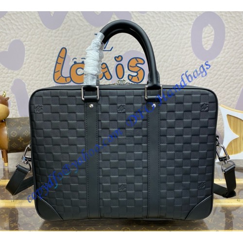 Damier Infini cowhide leather, with its emblematic checkerboard pattern embossed into the leather, brings subtle elegance to this Porte-Documents Voyage PM briefcase. The rolled-leather top handles and removable name tag, also in leather, give it a statutory feel while the adjustable – and detachable – shoulder strap makes it practical.