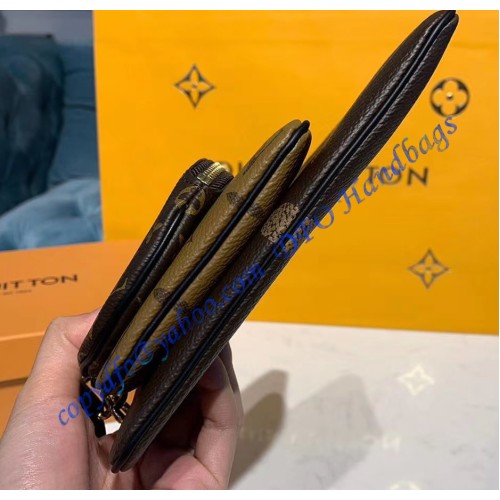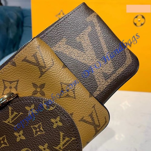The Trio Pouch is an ingenious design combining three different pouches in three variations of Louis Vuitton's iconic Monogram canvas. Ideal for essentials, the pouches can be used together or separately, and carried in the hand by the wristlet or attached to a bag or belt. They are secured with gold-tone LV Circle zips.