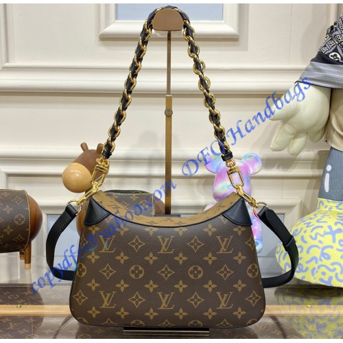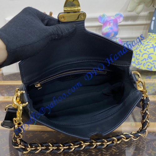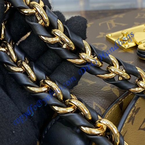 Inspired by the Maison’s archives, the casual yet sophisticated LV Twinny is the Monogram handbag of the season. Crafted from a mix of Monogram and Monogram Reverse canvas with black leather trim, it is detailed with an iconic S-lock and a braided chain handle. The bag lends itself to all manner of stylings: from elbow and shoulder to short or long cross-body wear.