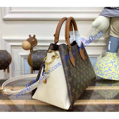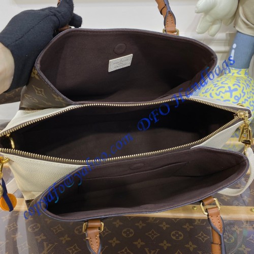 Evocative of the Louis Vuitton Pallas bag from 2012, with its combination of textures and colors, the Vendôme MM tote is fashioned from Monogram canvas with grained leather on the sides and smooth leather on the handles and handle mounts. Inside there are two compartments, room for a laptop, and numerous pockets.