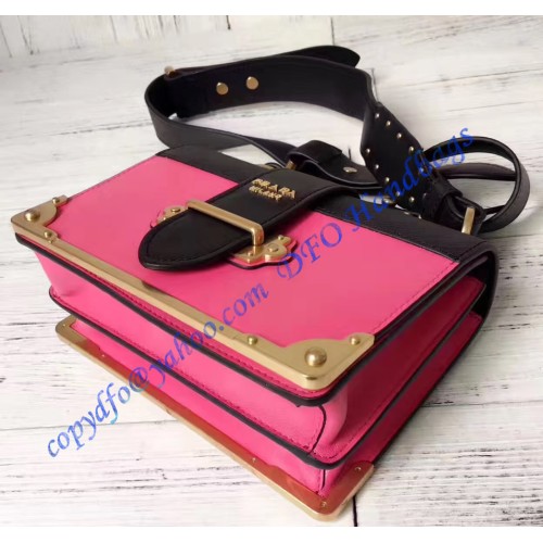 Inside a bag, once you pass by lace closure are two main pockets and two compartments. In general, they are large enough to allow for the owners to place most of the credit cards, coins, and other belongings into them. They are also stretchable and easy to remove an item from them. Logo of Prada is implemented on most metal pieces.