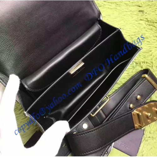 Inside a bag, once you pass by lace closure are two main pockets and two compartments. In general, they are large enough to allow for the owners to place most of the credit cards, coins, and other belongings into them. They are also stretchable and easy to remove an item from them. Logo of Prada is implemented on most metal pieces.