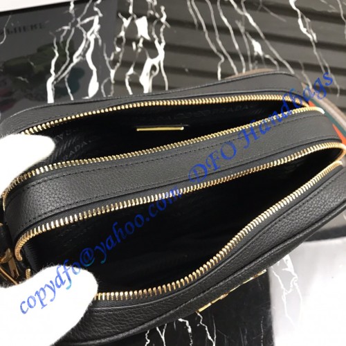 It has two compartments with zipper closures that allow you to keep your valuables safe at all times. Also, the lining is dark gray and has the Prada logo that perfectly compliments the exterior of the bag.