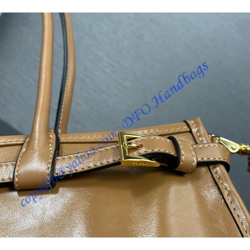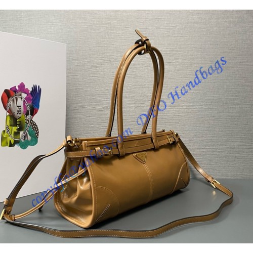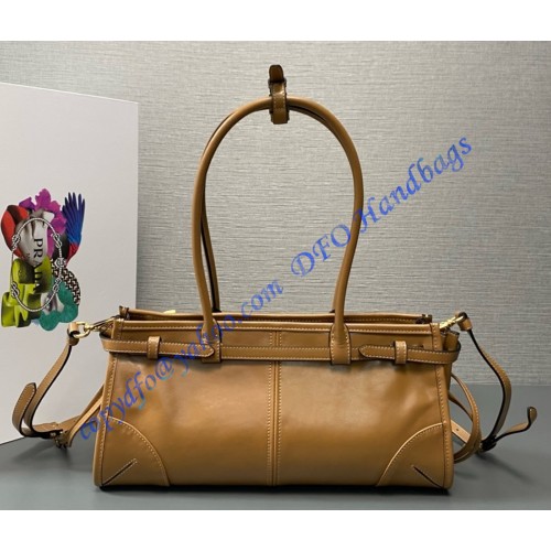 Prada Medium leather handbag with long handles PD1BA426-LS-caramel