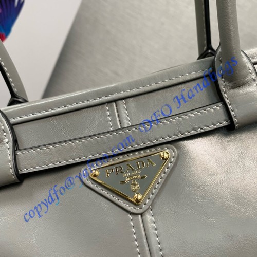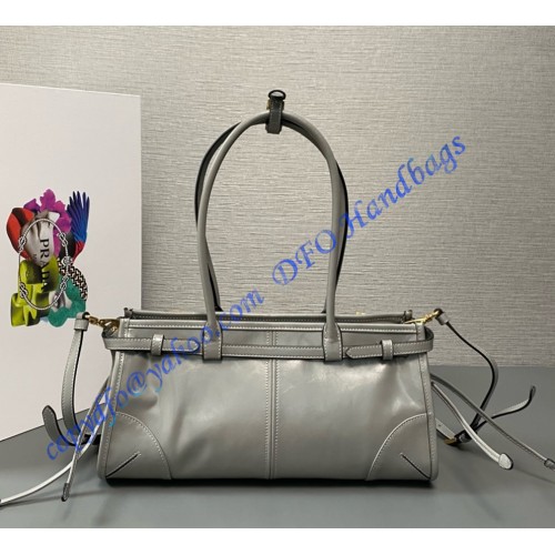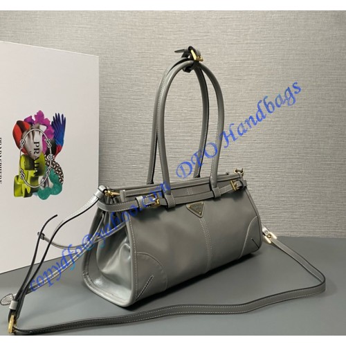 Prada Medium leather handbag with long handles PD1BA426-LS-gray