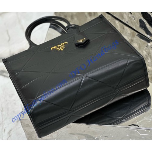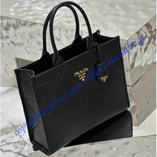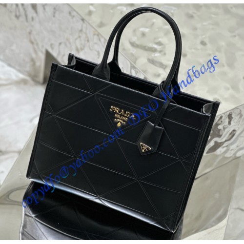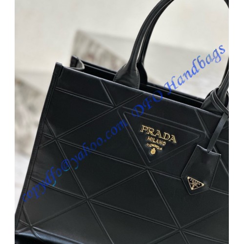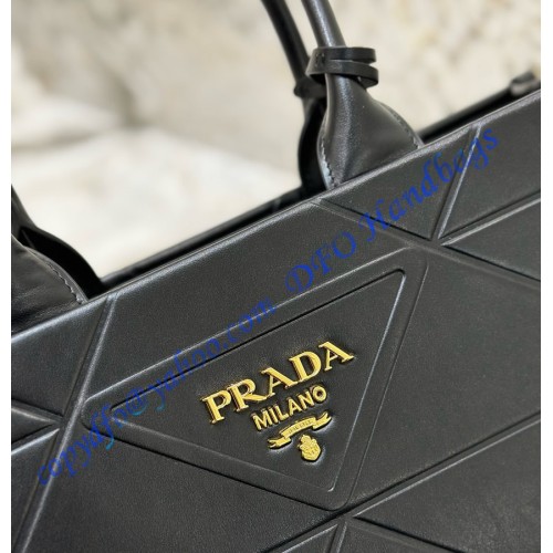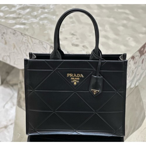 Prada Medium Leather Prada Symbole bag with topstitching PD1BA378-black
