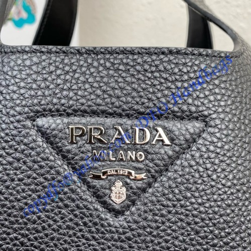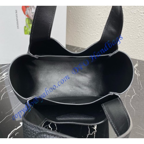 This soft leather tote introduced for the Fall Winter 2020 collection presents a new interpretation of the triangle logo, traced by stitching with the Prada metal lettering logo illuminating its center. The reverse stitching emphasizes the soft, rounded silhouette that comes with a double leather handle and magnetic button closure. The nappa interior has three compartments.