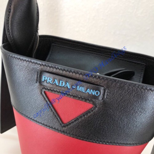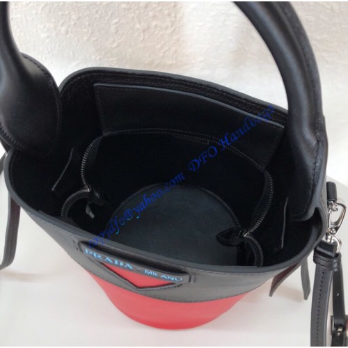 The Prada Ouverture nylon bucket bag in red and black is one of those bags that looks great with any outfit. Just by looking at the design, you can tell that it is something quite special!