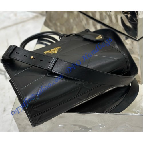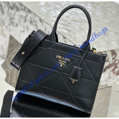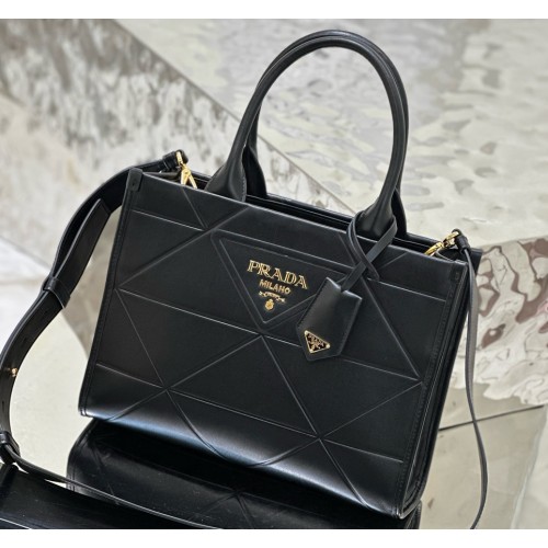Prada Small Leather Prada Symbole bag with topstitching PD1BA379-black
