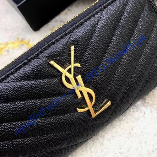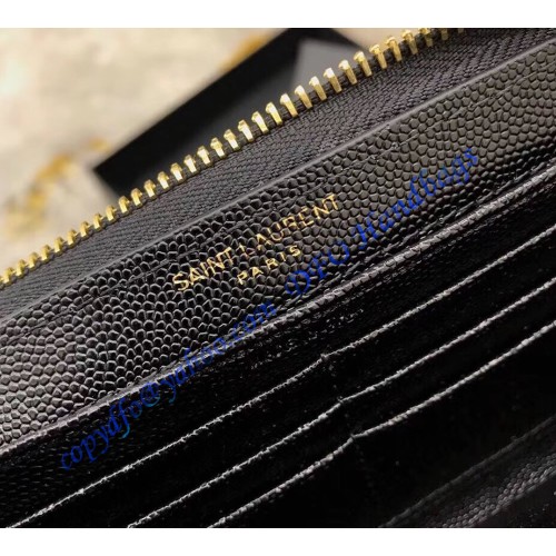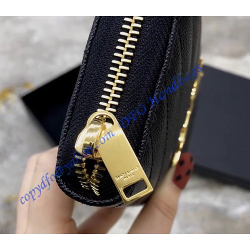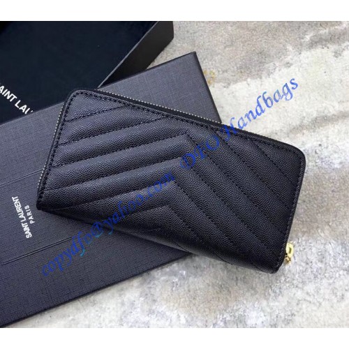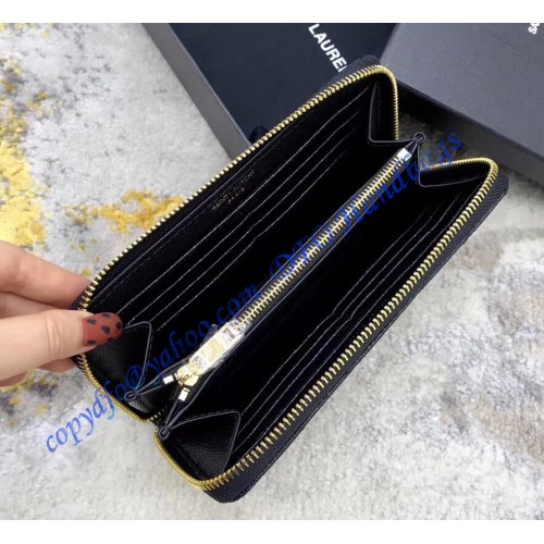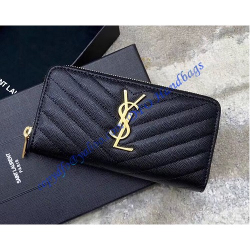 Saint Laurent Cassandre Matelasse Zip Around Wallet In Grain De Poudre Embossed Leather YW358094-A-black