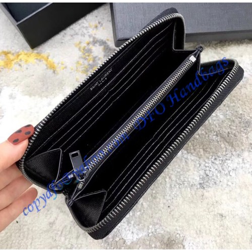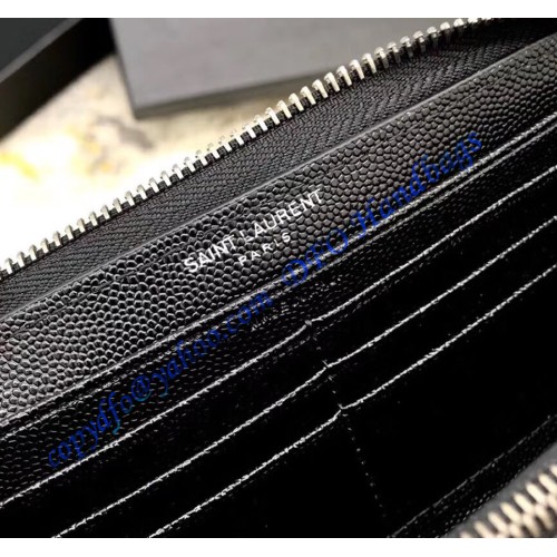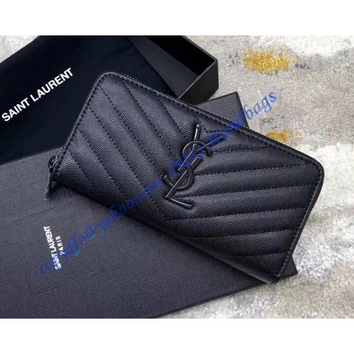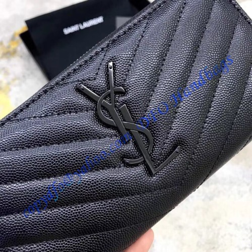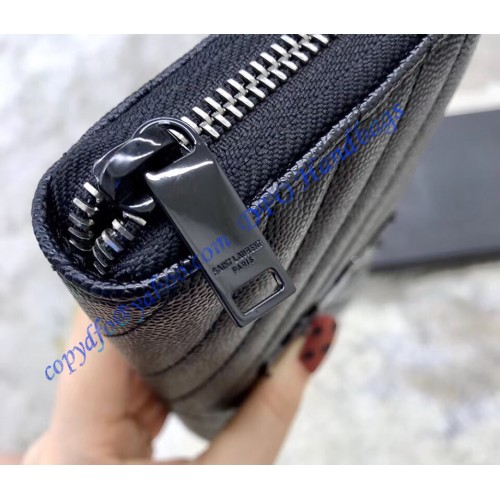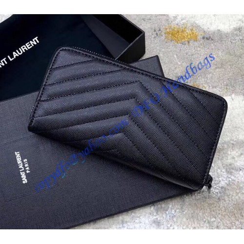 Saint Laurent Cassandre Matelasse Zip Around Wallet In Grain De Poudre Embossed Leather YW358094-C-black