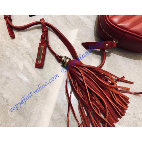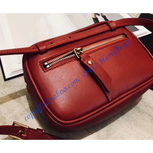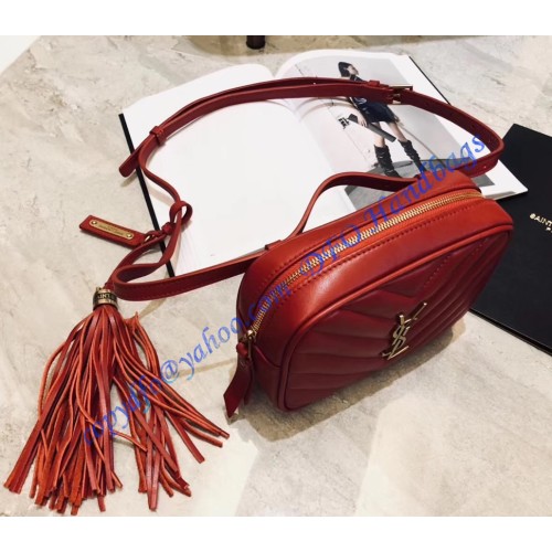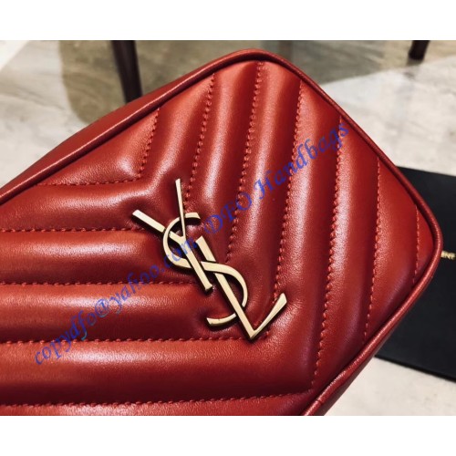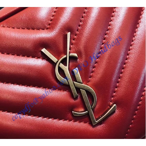 The Saint Laurent Lou bag is 16 cm (6.3 in) wide, 12 cm (4.7 in) long, and 5 cm (2.0 in) deep. Lou is a pleasant red in color and is made of lambskin.