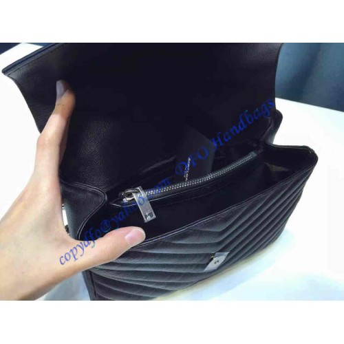 Saint Laurent Classic Medium College Monogram Bag in Black Malelasse Leather
