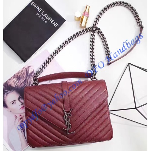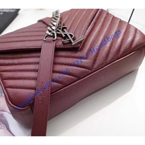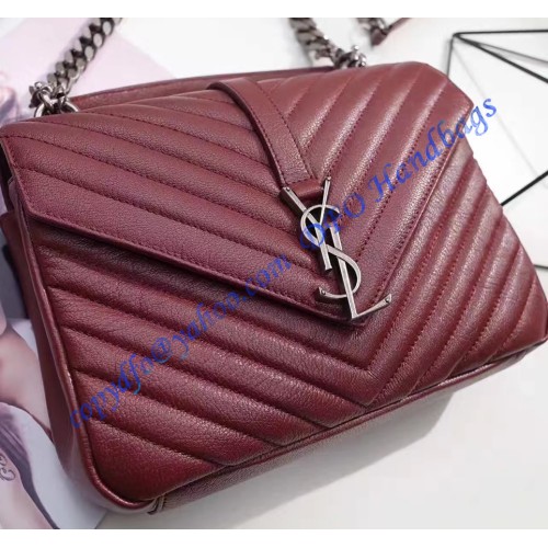 Saint Laurent Classic Medium College Monogram Bag in Wine Red Malelasse Leather