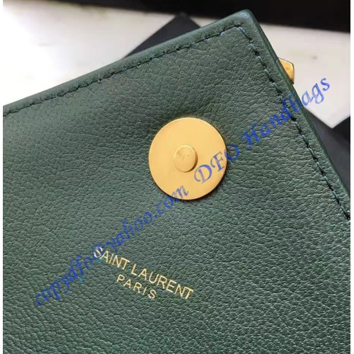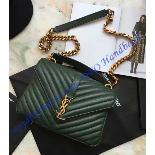 Saint Laurent Classic Medium College Monogram Bag in Green Malelasse Leather with Gold-toned Hardware