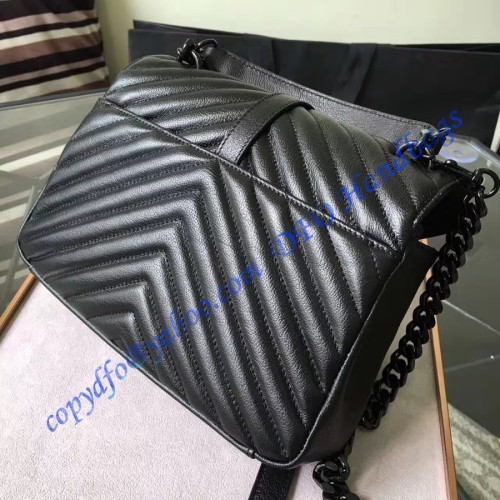 Saint Laurent Classic Medium College Monogram Bag in Black Malelasse Leather with Black-toned Hardware