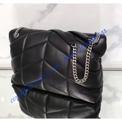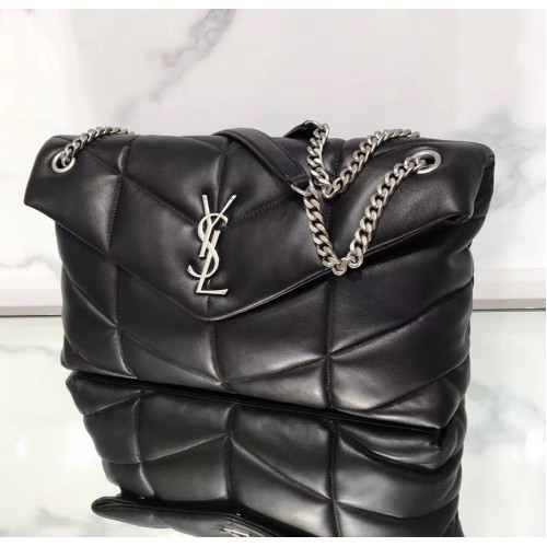 Saint Laurent LOULOU PUFFER Medium bag in quilted lambskin YSL577475B-black