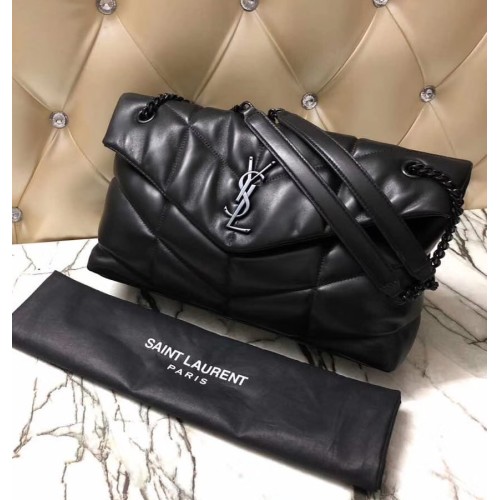 Saint Laurent LOULOU PUFFER Medium bag in quilted lambskin YSL577475C-black