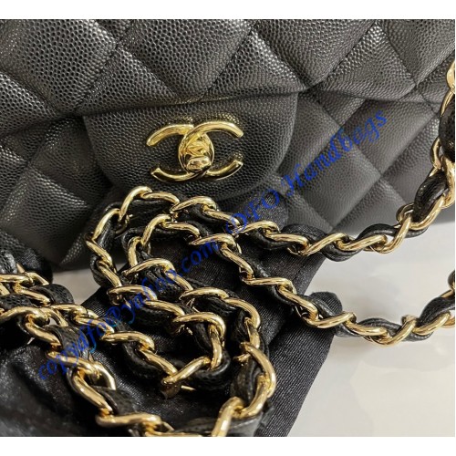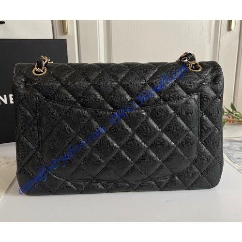 Chanel Jumbo Classic Flap Bag in Black Caviar Leather with golden hardware
