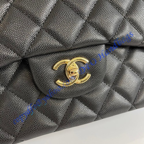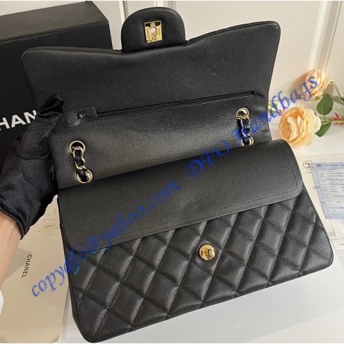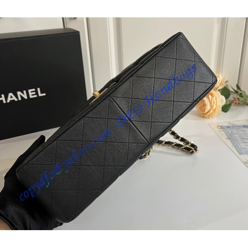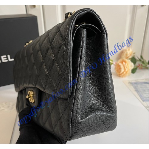Chanel Jumbo Classic Flap Bag in Black Caviar Leather with golden hardware