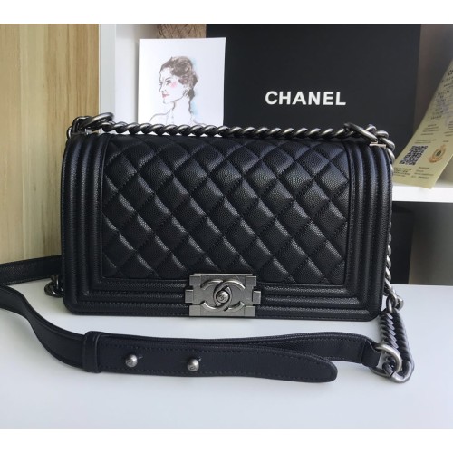 Chanel Boy Medium Quilted Flap Bag in Calfskin C67086BB-black