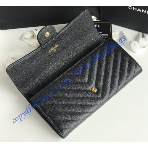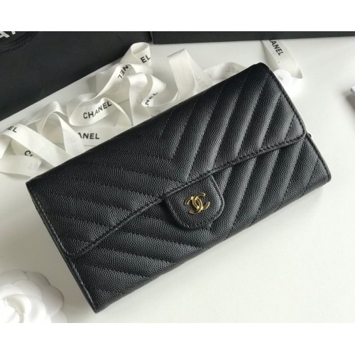 Chanel Chevron Long Zipper Wallet in Caviar Leather CW80758-V-AB-black