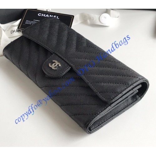 Chanel Chevron Long Zipper Wallet in Caviar Leather CW80758-V-BB-black