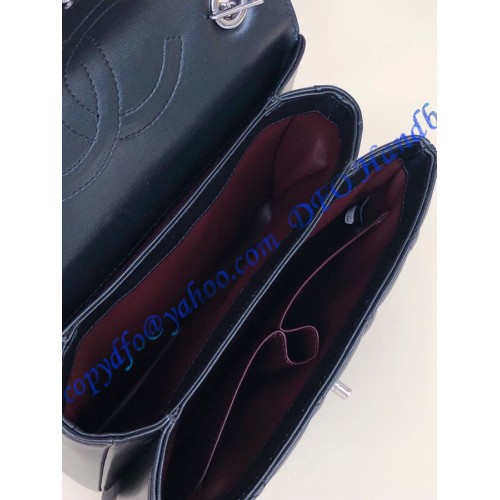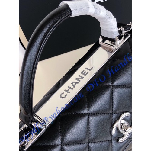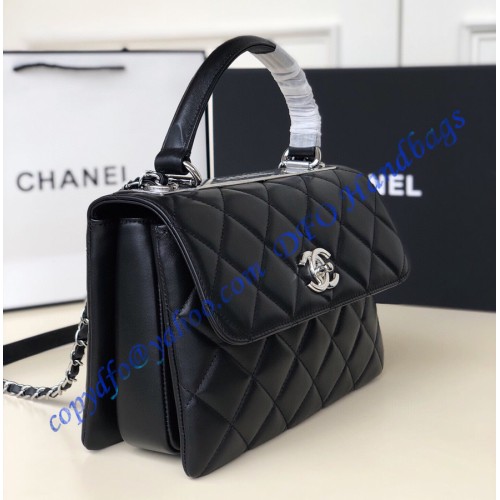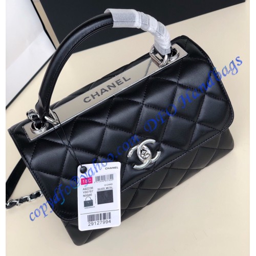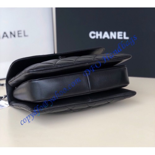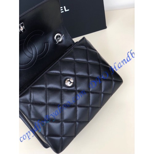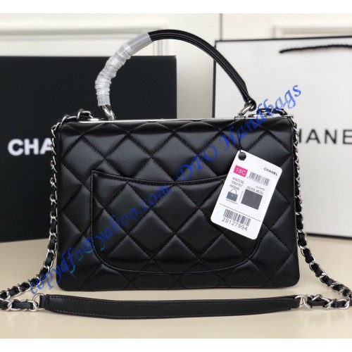 17 x 25 x 12 cm (Length x Height x Width) 6.7 x 9.8 x 4.7 inches •Black Lambskin •Silver Metal