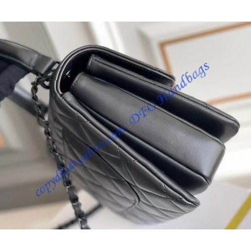 17 x 25 x 12 cm (Length x Height x Width) 6.7 x 9.8 x 4.7 inches •Black Lambskin •Black Metal