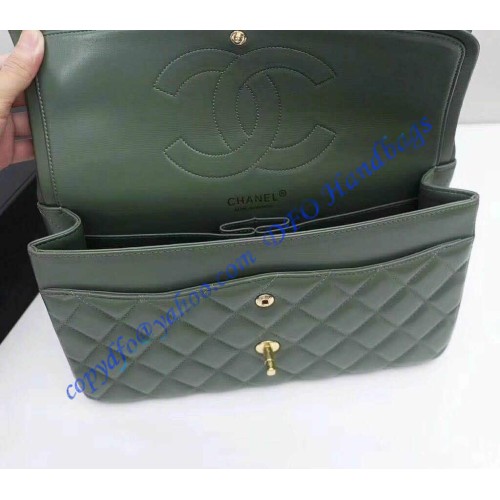 Chanel Jumbo Classic Flap Bag in Green Lambskin with golden hardware