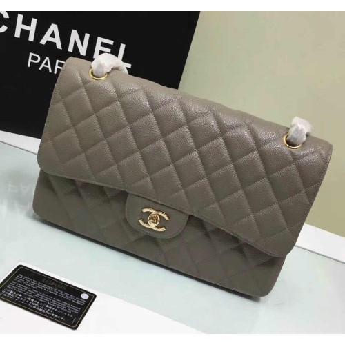 Chanel Jumbo Classic Flap Bag in Gray Caviar Leather with golden hardware