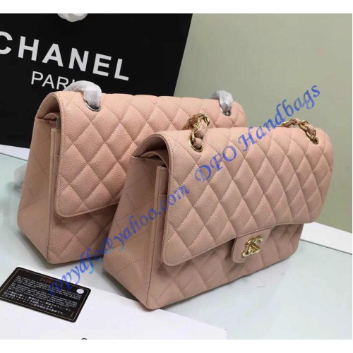 Chanel Jumbo Classic Flap Bag in Pink Caviar Leather with golden hardware