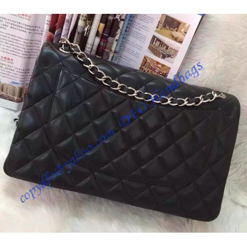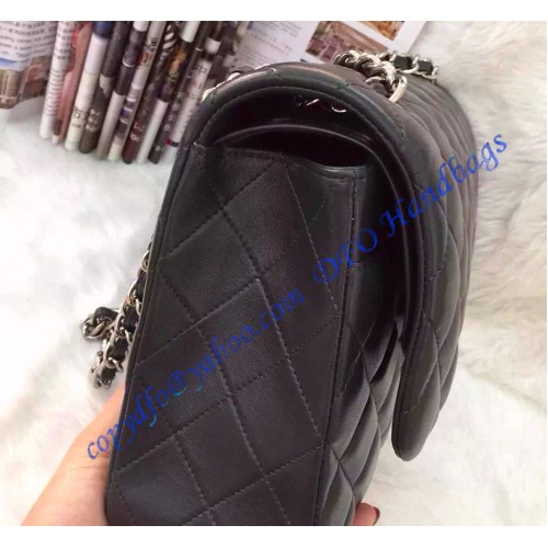 Chanel Jumbo Classic Flap Bag in Black Lambskin with silver hardware