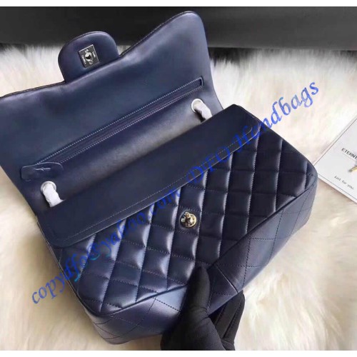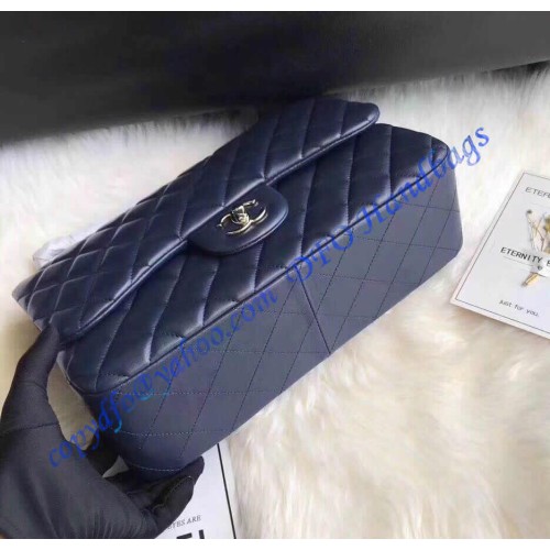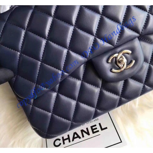 Chanel Jumbo Classic Flap Bag in Dark Blue Lambskin with silver hardware