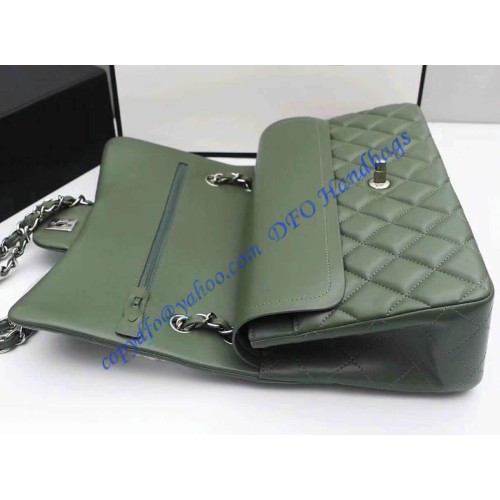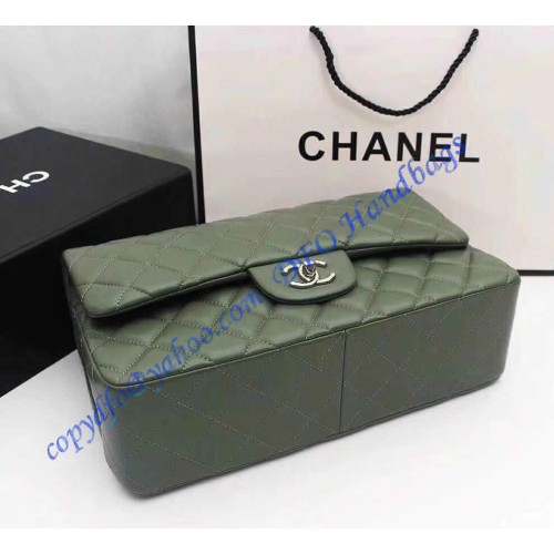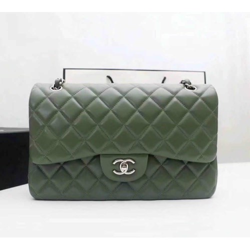 Chanel Jumbo Classic Flap Bag in Green Lambskin with silver hardware