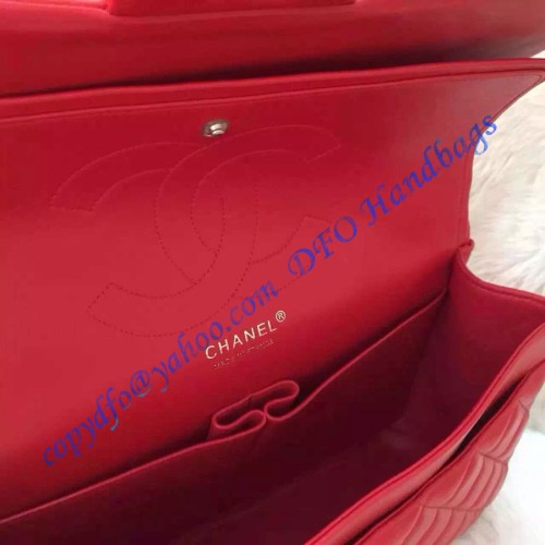 Chanel Jumbo Classic Flap Bag in Red Lambskin with silver hardware