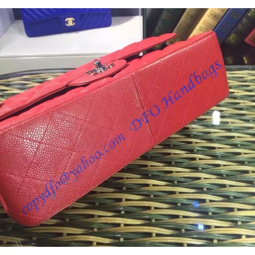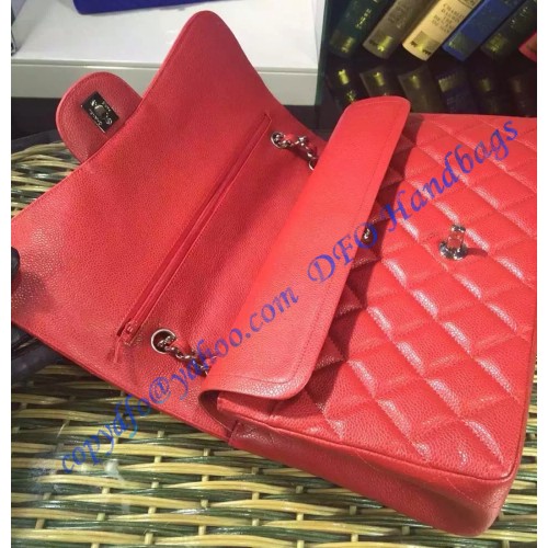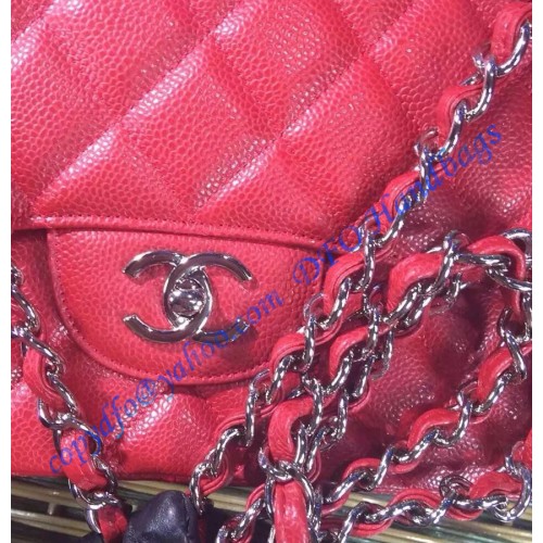 Chanel Jumbo Classic Flap Bag in Red Caviar Leather with silver hardware