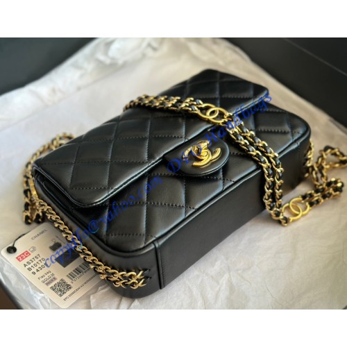 24 x 16 x 8 cm (Length x Height x Width) 9.4 x 6.3 x 3.2 inches •Black Lambskin..