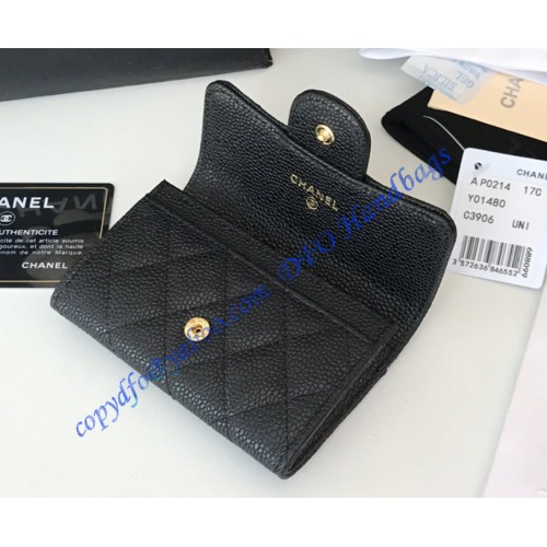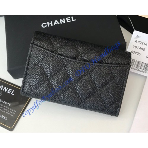 11.0 x 8.5 cm (Length x Height) 5.5 x 3.7 inches •Black Caviar Leather..