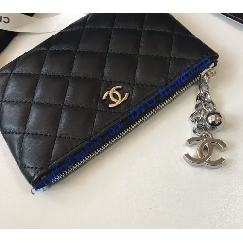 14.0 x 9.5 cm (Length x Height) 5.5 x 3.7 inches •Black Lambskin..