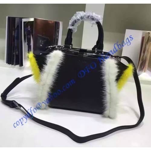 Fendi Mini 3Jours in Black Leather with mink-fur trim